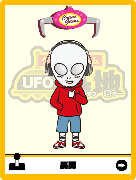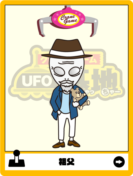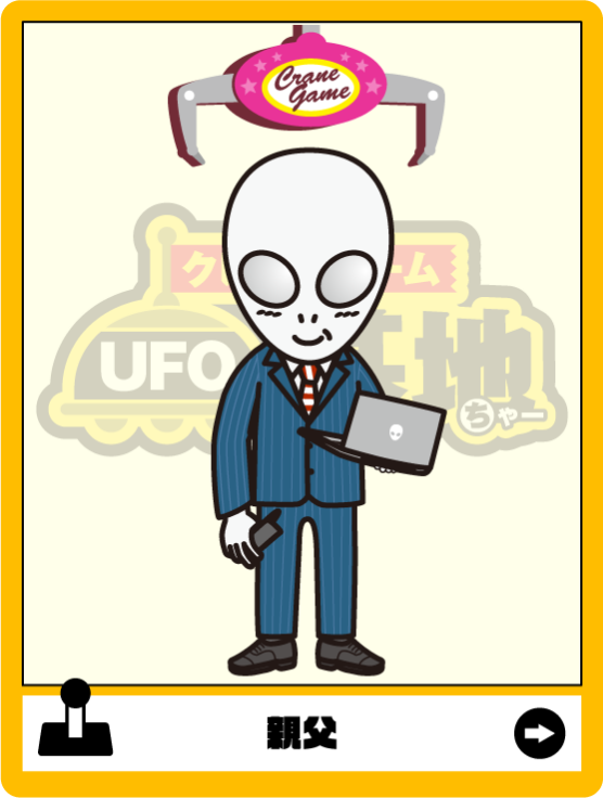 宇宙人家族の大黒柱。地球侵略を企み、はるか彼方の銀河から来日。最所に侵略を試みたエブリデイでクレーンゲームの楽しさを知り、侵略を中止。クレーンゲームの普及に力を注ぐ。