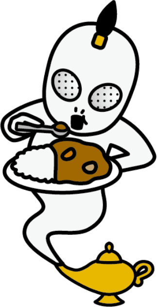 「カレー三昧!カレー三昧!」美味しそうなカレーの匂いにつられて魔法のランプから勝手に出てきた。大のカレー好きでカレーの歴史や文化にも興味津々。